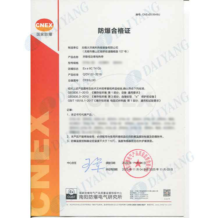 公司产品通过南阳防爆中心防爆认证,通过ISO9001、ISO14001、OHS18001体系认证,获得南阳防爆中心安装修理资格证书