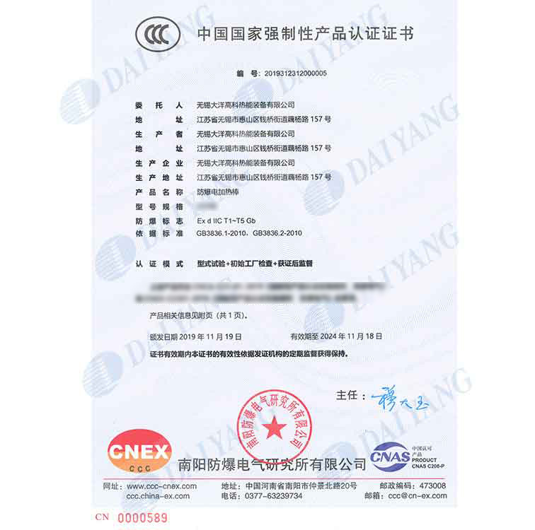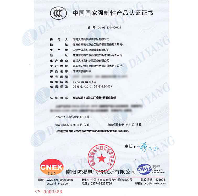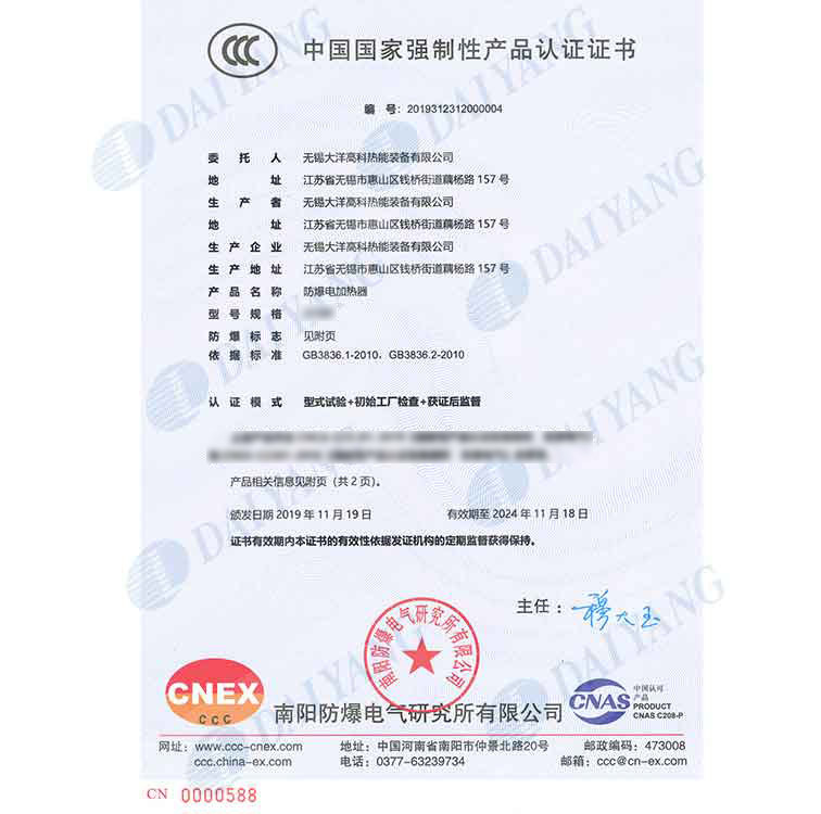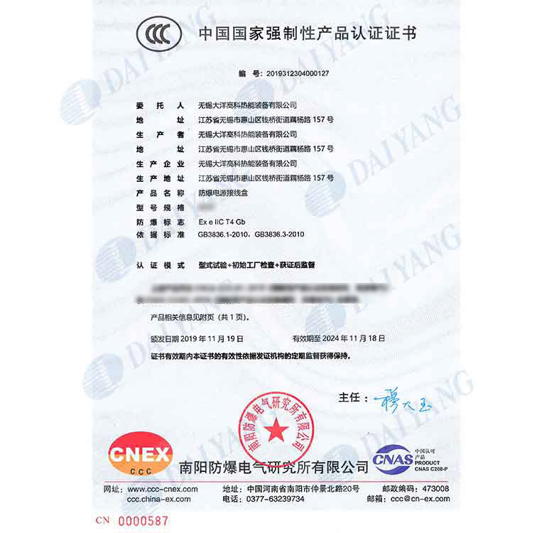 公司产品通过南阳防爆中心防爆认证,通过ISO9001、ISO14001、OHS18001体系认证,获得南阳防爆中心安装修理资格证书